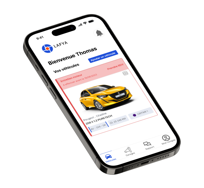 N’attendez plus qu’un voyant s’allume sur votre tableau de bord ! LAFYA vous offre la simplicité d’une application intuitive.